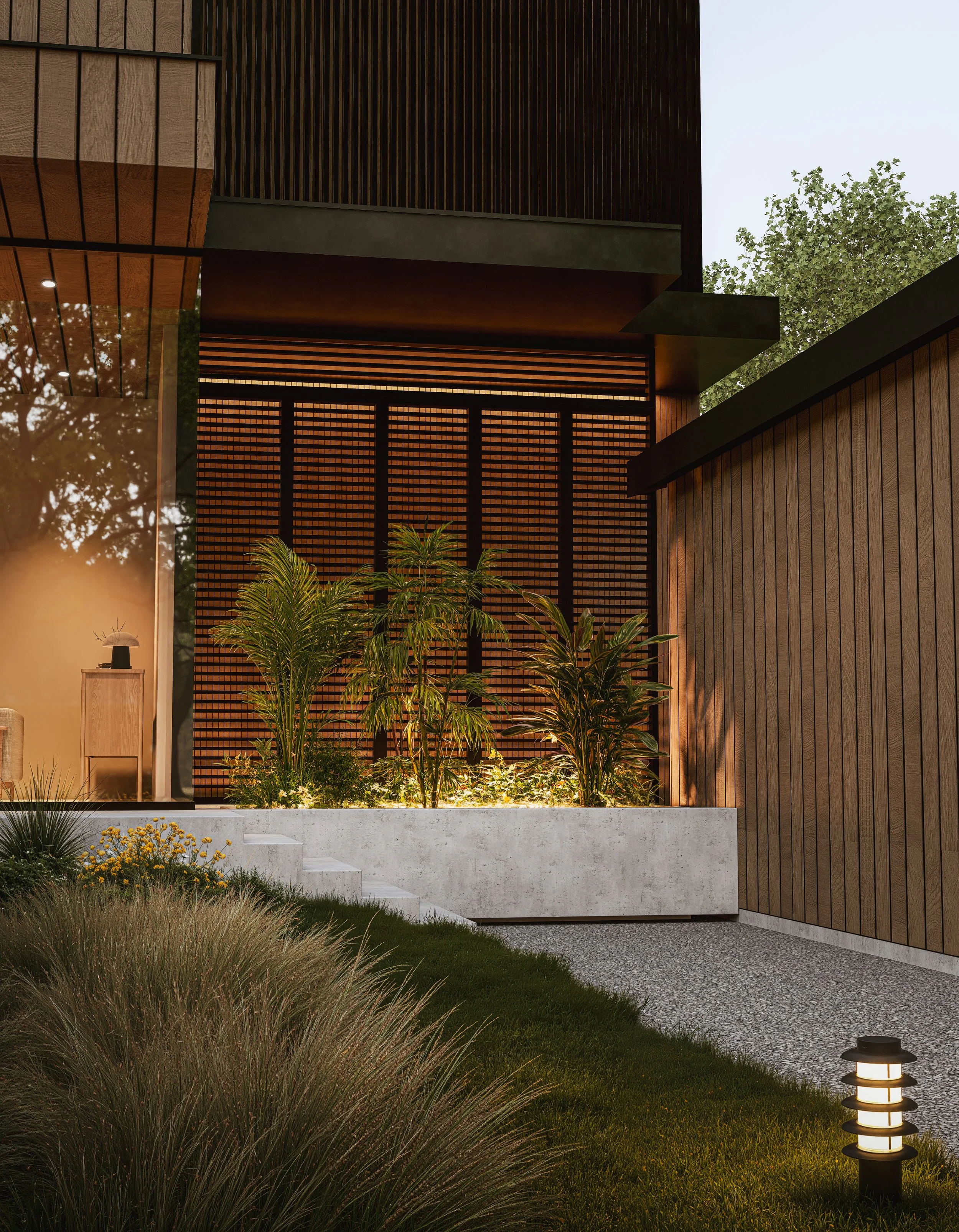 Detta projekt är en modern villa med tydlig arkitektonisk karaktär, där träets naturliga uttryck står i centrum. Den skarpa geometrin kombineras med en varm materialitet som skapar balans mellan stram form och inbjudande känsla.