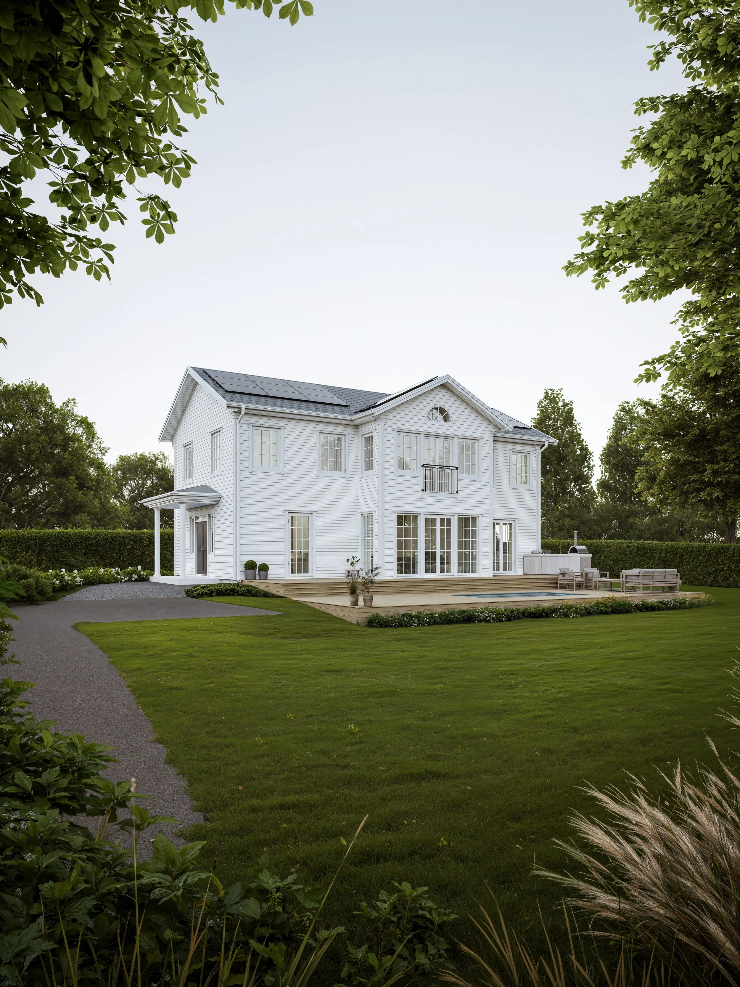 En visualisering av ett fantastiskt hus omgiven av en vacker miljö, gjord åt en privatperson.